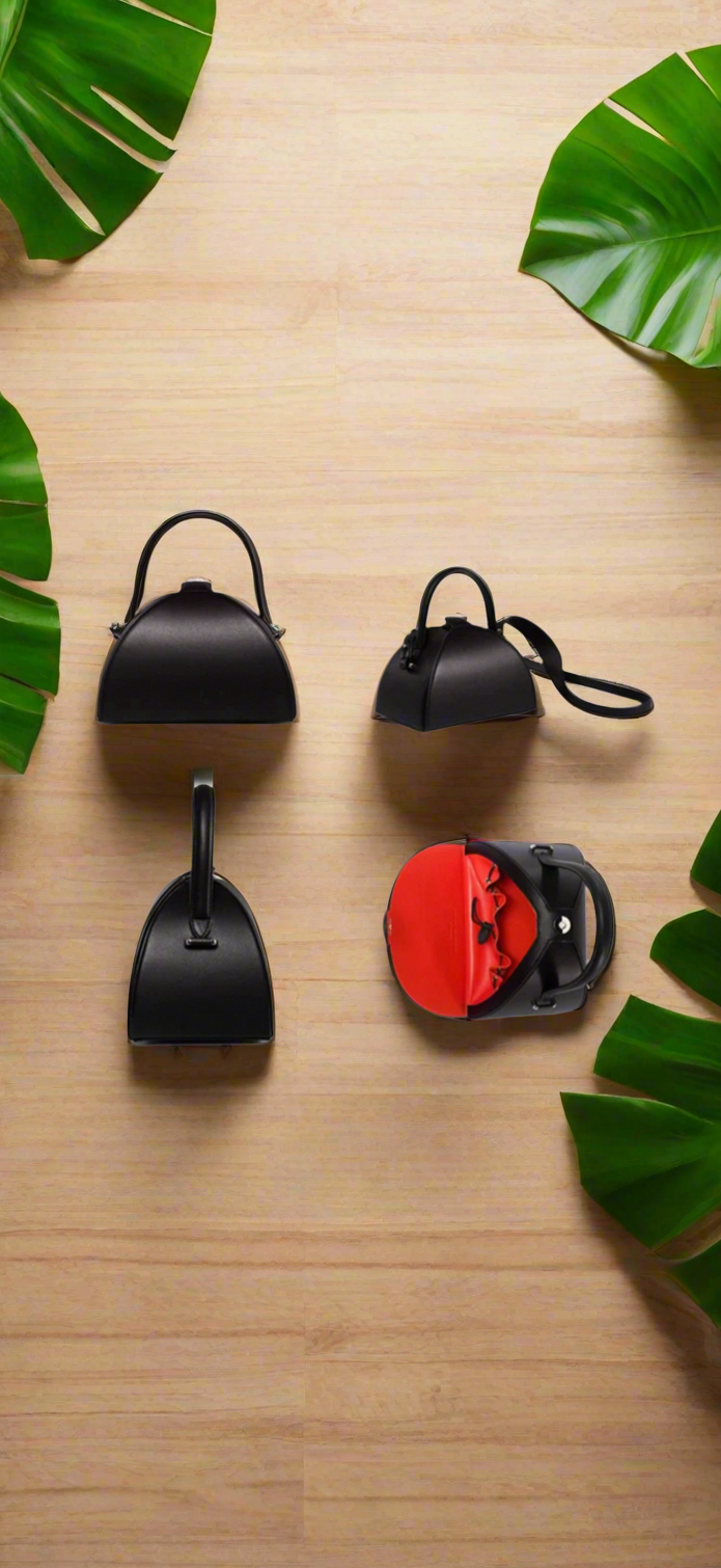 On the outside — elegant smooth black texture that fits seamlessly into any look. On the inside — a vibrant red lining with a delicate drawstring closure, like a hidden secret revealed only to its owner.