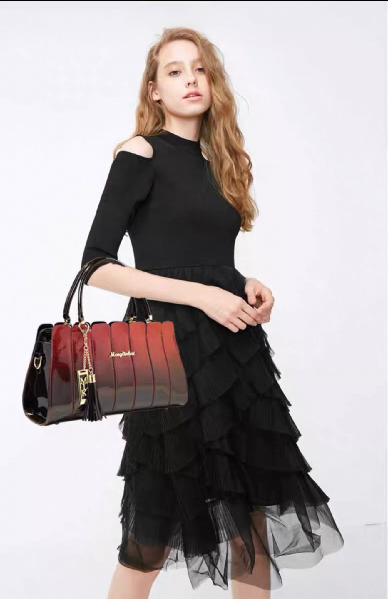 Velvet Ember is a bag for those who choose confidence without losing softness. The deep burgundy shade melts into black like an evening where the first candle is lit. Its glossy surface catches the light, while the golden details add a touch of quiet elegance.